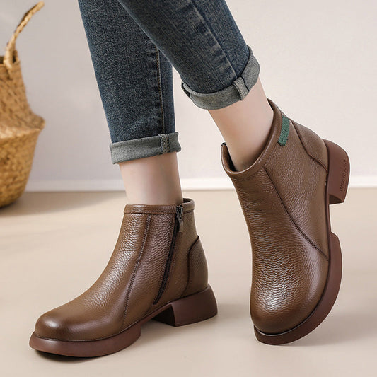 💞Livraison gratuite💞Bottines mi-montantes pour femme en cuir véritable avec fermeture éclair